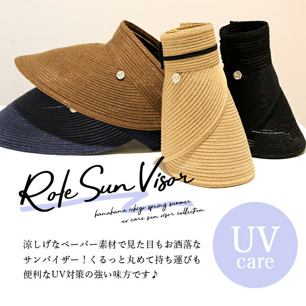 【サンバイザー レディース】 定形外郵便送料無料 春夏 おしゃれ 可愛い 自転車 紫外線対策 UVケア 日よけ ガーデニング 可愛い 小顔 サイズ調節 折り畳み お出かけ レジャー つば広 マジックテープ ペーパー素材 女性 シンプル ワイド ゴム ミセス シニア【Role Sun Visor】