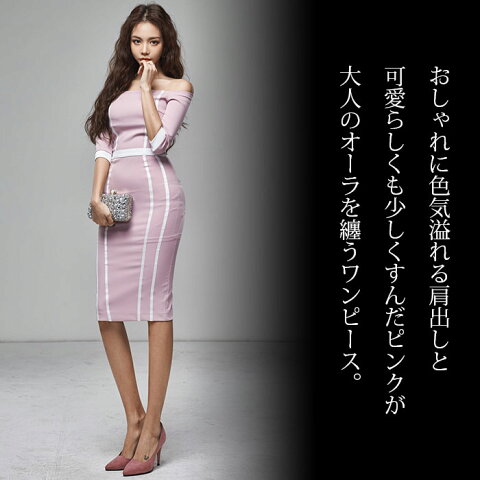 商品番号 ks5-6142 サイズ(cm)※B/W/Hは推奨サイズ ■S着丈:86 / 袖丈:24 / B:78-82 / W:60-64 / H:78-82■M着丈:87 / 袖丈:25 / B:82-86 / W:64-68 / H:82-86■L着丈:88 / 袖丈:26 / B:86-90 / W:68-72 / H:86-90■LL(XL)着丈:89 / 袖丈:27 / B:90-94 / W:72-76 / H:90-94 カラー ピンク 素材 ポリエステル / 伸縮性なし モデル 167cm/S着 詳細 肩出しオフショルが非常にセクシーでありながらもピンクカラーが可憐さも残す、ミディアム膝丈の5分袖ワンピースです。